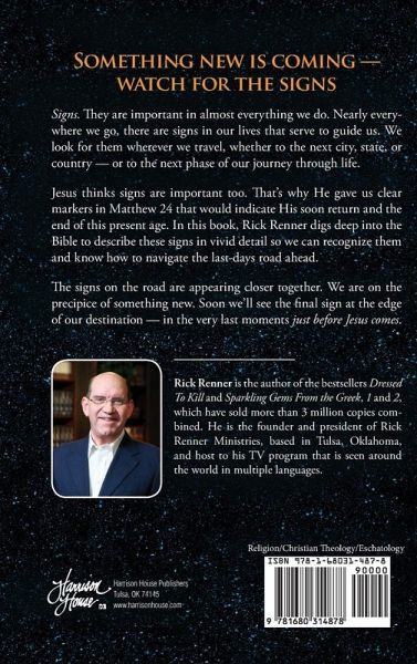 Something New is Coming - Watch for the Signs Signs. They are important in almost everything we do. Nearly everywhere we go, there are signs in our lives that serve to guide us. We look for them wherever we travel, whether to the next city, state, or country - or to the next phase of our journey through life. Jesus thinks signs are important too. That's why He gave us clear markers in Matthew 24 that would indicate His soon return and the end of this present age. In this book, Rick Renner digs deep into the Bible to describe these signs in vivid detail so we can recognize them and know how to navigate the last-days road ahead. The signs on the road are appearing closer together. We are on the precipice of something new. Soon we'll see the final sign at the edge of our destination - in the very last moments just before Jesus comes.