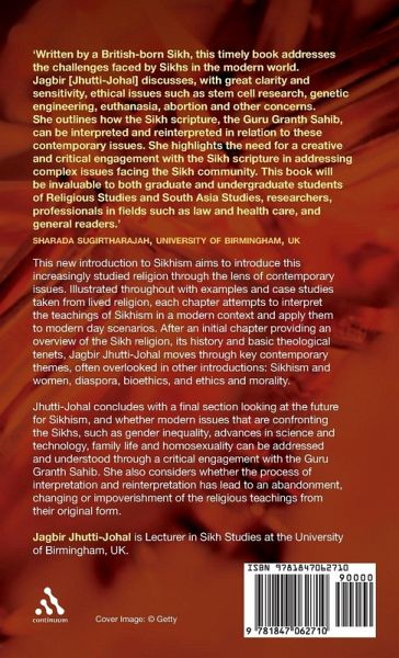 This new introduction to Sikhism aims to introduce this increasingly studied religion through the lens of contemporary issues. Illustrated throughout with examples and case studies taken from lived religion, each chapter attempts to interpret the teachings of Sikhism in a modern context and apply them to modern day scenarios. After an initial chapter providing an overview of the Sikh religion, its history and basic theological tenets, Jagbir Jhutti-Johal moves through key contemporary themes, often overlooked in other introductions: Sikhism and women, science and bioethics, and ethics and morality. She concludes with a final section looking at the future for Sikhism, and whether modern issues that are confronting the Sikhs, such as gender inequality, advances in science and technology, family life and homosexuality can be addressed and understood through a critical engagement with the Guru Granth Sahib. She will also consider whether the process of interpretation and reinterpretation has lead to an abandonment, changing or impoverishment of the religious teachings from their original form.