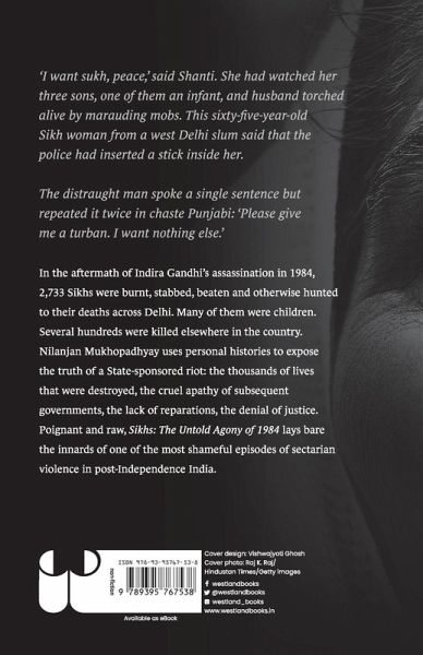 About the Book A SEARING ACCOUNT OF 1984, PACKED WITH STORIES AND MEMORIES. 'I want sukh, peace,' said Shanti. She had watched her three sons, one of them an infant, and husband torched alive by marauding mobs. The sixty-five-year-old Sikh woman from a west Delhi slum said that the police had inserted a stick inside her. The distraught man spoke a single sentence but repeated it twice in chaste Punjabi: 'Please give me a turban. I want nothing else.' In the aftermath of Indira Gandhi's assassination in 1984, 2,733 Sikhs were burnt, stabbed, beaten and otherwise hunted to their deaths across Delhi. Many of them were children. Several hundreds were killed elsewhere in the country. Nilanjan Mukhopadhyay uses personal histories to expose the truth of a state-sponsored riot: the thousands of lives that were destroyed, the cruel apathy of subsequent governments, the lack of reparations, the denial of justice. Poignant and raw, Sikhs: The Untold Agony of 1984 lays bare the innards of one of the most shameful episodes of sectarian violence in post-Independence India. About the Author Nilanjan Mukhopadhyay embarked on a career in journalism in the early 1980s and is best known for his reportage and analysis of the rise and growth of Hindu organisations, their politics and agitations. He is among the first journalists to track the emergence of the Ram Janmabhoomi-Babri Masjid conflict from the late 1980s. He has followed, and written about, the political and electoral emergence of the BJP and its allies from that period. He is the author of The Demolition: India at the Crossroads (1994), one of the first books on the Ayodhya discord and the rise of Hindutva. He is also the author of Narendra Modi: The Man, the Times (2013), The RSS: Icons of the Indian Right (2019) and The Demolition and the Verdict: Ayodhya and the Project to Reconfigure India (2021). He is a regular columnist in, and contributor to, several leading newspapers and web portals, and a well-known commentator and host on Indian television news and video channels. An unabashed college dropout, he lives in India's National Capital Region.