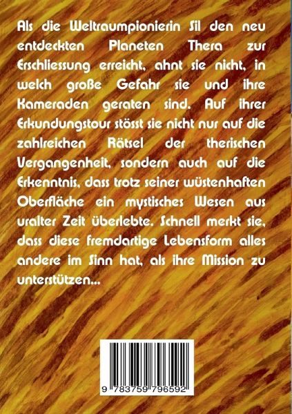 Als die Weltraumpionierin Sil den neu entdeckten Planeten Thera zur Erschließung erreicht, ahnt sie nicht, in welch große Gefahr sie und ihre Kameraden geraten sind. Auf ihrer Erkundungstour stößt sie nicht nur auf die zahlreichen Rätsel der therischen Vergangenheit, sondern auch auf die Erkenntnis, dass trotz seiner wüstenhaften Oberfläche ein mystisches Wesen aus uralter Zeit überlebte. Schnell merkt sie, dass diese fremdartige Lebensform alles andere im Sinn hat, als ihre Mission zu unterstützen ...
