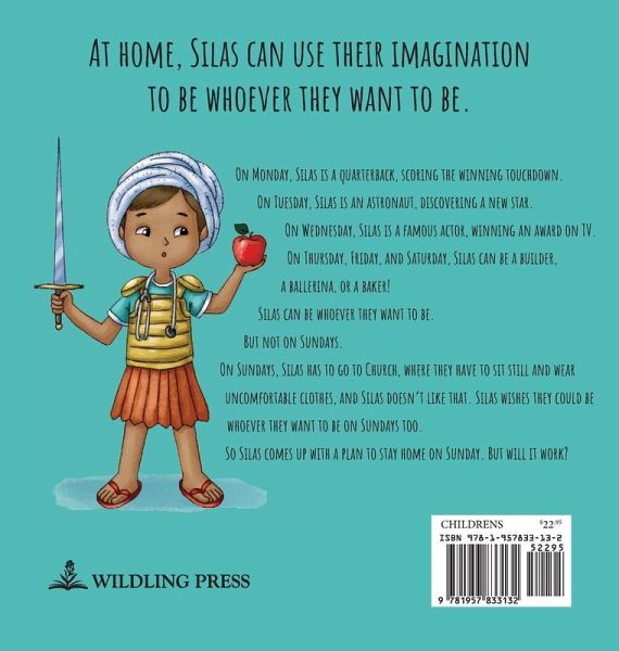 At home, Silas can use their imagination to be whoever they want to be. On Monday, Silas is a quarterback, scoring the winning touchdown. On Tuesday, Silas is an astronaut, discovering a new star. On Wednesday, Silas is a famous actor, winning an award on TV. On Thursday, Friday, and Saturday, Silas can be a builder, a ballerina, or a baker! Silas can be whoever they want to be. But not on Sundays. On Sundays, Silas has to go to church, where they have to sit still and wear uncomfortable clothes, and Silas doesn't like that. Silas wishes they could be whoever they want to be on Sundays too. So Silas comes up with a plan to stay home on Sunday. But will it work? When Silas goes to church on Sundays, they have to sit still and dress a certain way, which makes Silas feel less like themself. But, like people, not every church is made the same. Join Silas as they find their place, even on Sundays.
