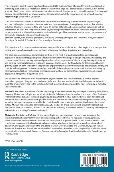 The book approaches silence and silencing on three levels. First, it provides context for psychoanalytic approaches to silence through chapters about silence in phenomenology, theology, linguistics, musicology, and contemporary Western society. Its central part is devoted to the position of silence in psychoanalysis: its types and possible meanings (a form of resistance, in countertransference, the foundation for listening and further growth), based on both the work of the pioneers of psychoanalysis and on clinical case presentations. Finally, the book includes reports of conversation analytic research of silence in psychotherapeutic sessions and everyday communication. Not only are original techniques reported here for the first time, but research and clinical approaches fit together in significant ways.