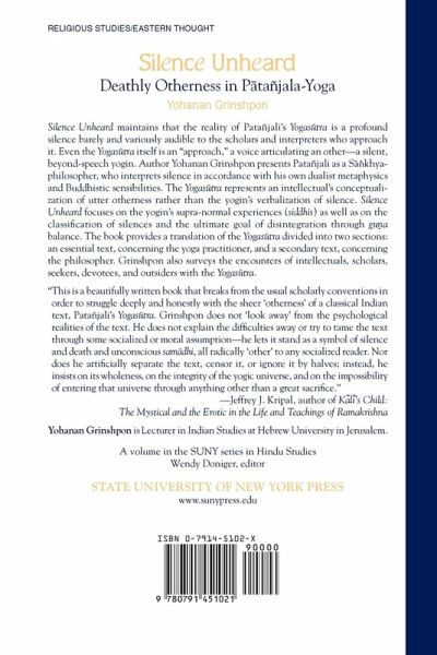Explores the experience of yoga in the Yogasutra of Patanjali. Silence Unheard maintains that the reality of Patañjali's Yogas¿tra is a profound silence barely and variously audible to the scholars and interpreters who approach it. Even the Yogas¿tra itself is an "approach," a voice articulating an other- a silent, beyond-speech yogin. Author Yohanan Grinshpon presents Patañjali as a S¿¿khya-philosopher, who interprets silence in accordance with his own dualist metaphysics and Buddhistic sensibilities. The Yogas¿tra represents an intellectual's conceptualization of utter otherness rather than the yogin's verbalization of silence. Silence Unheard focuses on the yogin's supra-normal experiences (siddhis) as well as on the classification of silences and the ultimate goal of disintegration through güa balance. The book provides a translation of the Yogas¿tra divided into two sections: an essential text, concerning the yoga practitioner, and a secondary text, concerning the philosopher. Grinshpon also surveys the encounters of intellectuals, scholars, seekers, devotees, and outsiders with the Yogas¿tra.