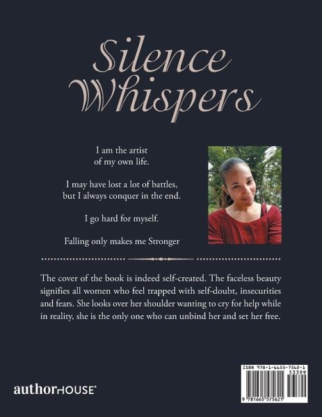 The cover of the book is indeed self-created. The faceless beauty signifies all women who feel trapped with self-doubt, insecurities and fears. She looks over her shoulder wanting to cry for help while in reality, she is the only one who can unbind her and set her free.