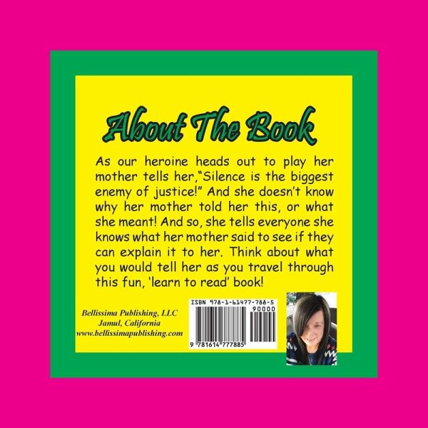 Our heroine wonders about what her mother means when her mother tells her, "Silence is the biggest enemy of justice!" And so, she goes about telling everyone she knows what her mother said to see if they can tell her what her mother meant. (And she begins with her friend, the elephant!) Think about what you would tell our heroine as you go traveling through this fun, 'learn to read' book that is filled with word recognition, and word repetition and rhyme, all of which will help you build your reading word vocabulary and improve your reading skills! Written by the award winning author, attorney and former teacher, Penelope Dyan, who has two of her 'learn to read' books in the Saison Poetry Library, Level 5, in the Royal Festival Hall, South Bank Centre, London, UK, chosen by the UK Arts Council, this book is meant to show kids they can have fun with learning; because (as everyone knows) if kids don't have fun learning, they won't love to learn! And as an added bonus (of fun and learning) kids can go to the Bellissimavideo YouTube channel; and they can watch the free, fun music video that goes with this book! And then they can have even more learning fun! After all, learning should always be fun!
