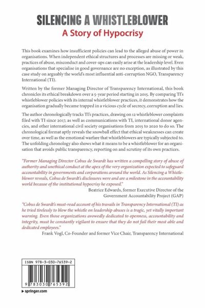 This book examines how insufficient policies can lead to the alleged abuse of power in organisations. When independent ethical structures and processes are missing or weak, practices of abuse, misconduct and cover-ups can easily arise at the leadership level. Even organisations that specialise in good governance are no exception, as illustrated by this case study on arguably the world's most influential anti-corruption NGO, Transparency International (TI).