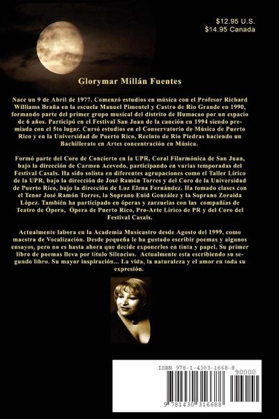 Actualmente labora en la Academia Musicastro desde Agosto del 1999, como maestra de Vocalización. Desde pequeña le ha gustado escribir poemas y algunos ensayos, pero no es hasta ahora que decide exponerlos en tinta y papel. Su primer libro de poemas lle