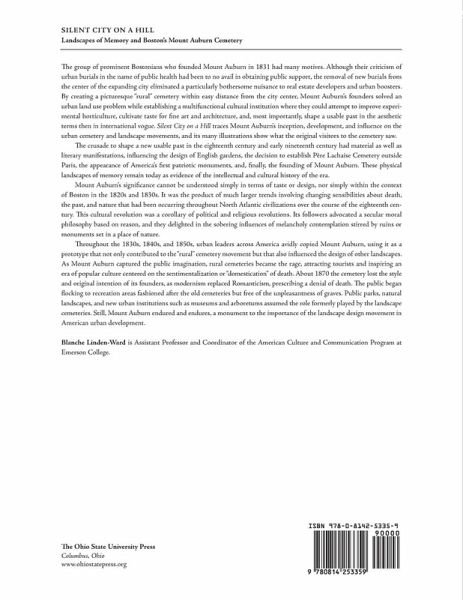 The group of prominent Bostonians who founded Mount Auburn in 1831 had many motives. Although their criticism of urban burials in the name of public health had been to no avail in obtaining public support, the removal of new burials from the center of the expanding city eliminated a particularly bothersome nuisance to real estate developers and urban boosters. By creating a picturesque "rural" cemetery within easy distance from the city center, Mount Auburn's founders solved an urban land use problem while establishing a multifunctional cultural institution where they could attempt to improve experimental horticulture, cultivate taste for fine art and architecture, and, most importantly, shape a usable past in the aesthetic terms then in international vogue. Silent City on a Hill traces Mount Auburn's inception, development, and influence on the urban cemetery and landscape movements, and its many illustrations show what the original visitors to the cemetery saw. Blanche Linden-Ward is Assistant Professor and Coordinator of the American Culture and Communication Program at Emerson College.