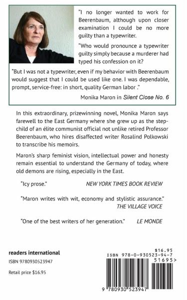 In this extraordinary, prizewinning novel, Monika Maron says farewell to the East Germany where she grew up as the stepchild of an élite communist official not unlike retired Professor Beerenbaum, who hires disaffected writer Rosalind Polkowski to transcribe his memoirs. Shortly after the Berlin Wall, which Maron loathed, fell and her country disappeared, she returned home to write this subtle yet scathing look at herself living among the thinkers, drinkers, and elderly believers who kept the communist state going to the very end. Part argument with her father and cry of pain across the grave, part exploration of her own role and guilt as a follower in the GDR’s sad funeral procession, Silent Close No. 6 has lost none of its depth of feeling, its power or its honesty. With her sharp feminist vision, Monika Maron spares neither foolish lovers, nor dilettantes, nor the upholders of state power - and certainly not herself. Here is essential reading to understand the Germany of yesterday, and also that of today. "Icy prose." NEW YORK TIMES BOOK REVIEW "Maron writes with wit, economy and stylistic assurance." THE VILLAGE VOICE "One of the best writers of her generation." LE MONDE