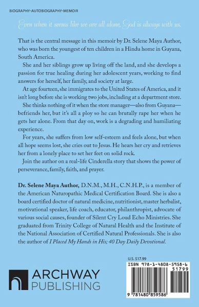 Even when it seems like we are all alone, God is always with us. That is the central message in this memoir by Dr. Selene Maya Author, who was born the youngest of ten children in a Hindu home in Guyana, South America. She and her siblings grow up living off the land, and she develops a passion for true healing during her adolescent years, working to find answers for herself, her family, and society at large. At age fourteen, she immigrates to the United States of America, and it isn't long before she is working two jobs, including at a department store. She thinks nothing of it when the store manager-also from Guyana-befriends her, but it's all a ploy so he can brutally rape her when he gets her alone. From that day on, work is a degrading and humiliating experience. For years, she suffers from low self-esteem and feels alone, but when all hope seems lost, she cries out to Jesus. He hears her cry and retrieves her from a lonely place to set her feet on solid rock. Join the author on a real-life Cinderella story that shows the power of perseverance, family, faith, and prayer.