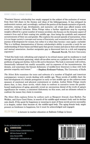 The Silent Echo examines the contemporary female midlife novel and its failure to acknowledge and engage the aging female body. Examining novels by authors such as Margaret Atwood, Fay Weldon, Joan Barfoot, and Joyce Carol Oates, The Silent Echo integrates various social, psychological, and philosophical theories with those of cultural studies to analyze how and why the aging female body has become the silent echo at the core of women's fiction.