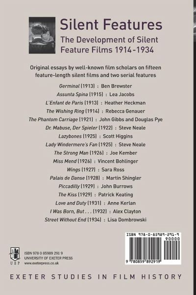 Silent Features is a collection of essays on seventeen feature-length silent films and two silent serial features, their diverse stylistic, generic and structural characteristics, and the national, historical and industrial contexts from which they emerged. Of the 17 films discussed, 15 are still currently available on DVD. 200 b&w illustrations.