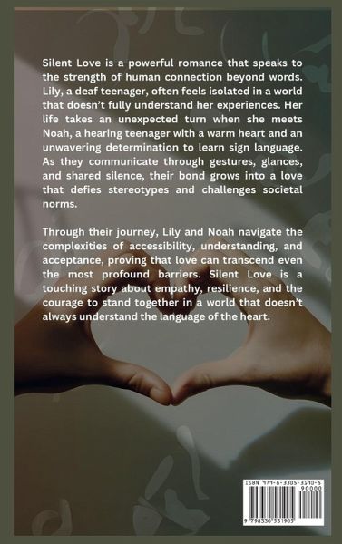 Silent Love is a powerful romance that speaks to the strength of human connection beyond words. Lily, a deaf teenager, often feels isolated in a world that doesn't fully understand her experiences. Her life takes an unexpected turn when she meets Noah, a hearing teenager with a warm heart and an unwavering determination to learn sign language. As they communicate through gestures, glances, and shared silence, their bond grows into a love that defies stereotypes and challenges societal norms. Through their journey, Lily and Noah navigate the complexities of accessibility, understanding, and…mehr