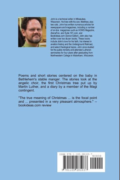 Poems and short stories centered on the baby in Bethlehem's stable manger. The stories look at the angelic choir, the first Christmas tree put up by Martin Luther, and a diary by a member of the Magi contingent. "The true meaning of Christmas ... is the focal point and ... presented in a very pleasant atmosphere." -- bookideas.com review