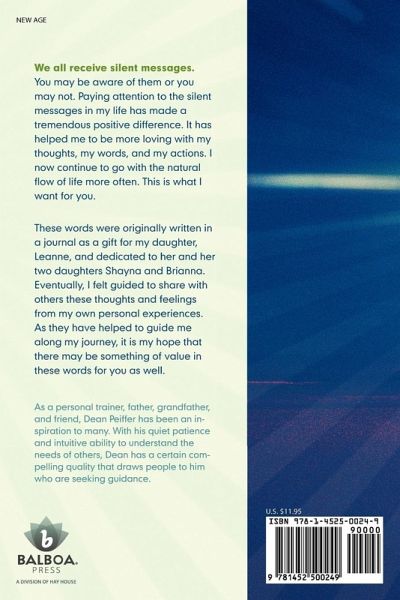 We all receive silent messages. You may be aware of them or you may not. Paying attention to the silent messages in my life has made a tremendous positive difference. It has helped me to be more loving with my thoughts, my words, and my actions. I now continue to go with the natural flow of life more often. This is what I want for you. These words were originally written in a journal as a gift for my daughter, Leanne, and dedicated to her and her two daughters Shayna and Brianna. Eventually, I felt guided to share with others these thoughts and feelings from my own personal experiences. As they have helped to guide me along my journey, it is my hope that there may be something of value in these words for you as well.