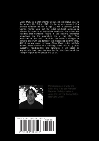 "Silent Music" is a short memoir about one tumultuous year in the author's life. Set in 1976, it's the author's account of a fairytale romance he has at age 22 with a beautiful young woman named Lisa. But the initial whirlwind romance ultimately results in the author's emotional breakdown. The remainder of the book chronicles the author's struggle to come to grips with the defeat of the relationship and the difficult journey to recovery. "Silent Music" is the honest account of a crushing illness that is by turns heart-rending and evocative. It will speak to anyone who has been shattered by life, and then found the courage to pick up the pieces and go on.