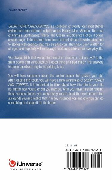 Silent Power and Control is a collection of twenty-four short stories divided into eight different subject areas: Family, Men, Women, The Love of Animals, Lighthouses, Trains, The Ocean, and Science Fiction. It offers a wide range of stories from humorous fictional stories, to sad stories, and to stories with endings that may surprise you. They have been written for all ages, and hopefully will encourage readers to think about everyday life. We always think that we are in control of situations, but are we? Is the silent power that surrounds us a good thing or a bad thing? The answers to these questions may be surprising to all. You will have questions about the control issues that govern your life. After reading this book, you will have a new awareness of Silent Power and Control. It is important to think about how this affects your life no matter how young or old you may be. After you have finished reading these various stories, you must ask yourself about the environment that surrounds you and realize that in many instances you and only you can do something to change it for the better.