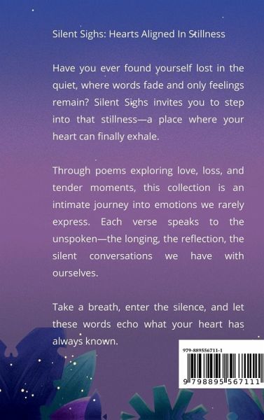 Silent Sighs: Where Hearts Meet in Stillness is a tender exploration of the unspoken emotions that shape our lives. In this evocative collection, poet Anlet Nevi J delves into the quiet moments that linger between love and loss, joy and sorrow, and the delicate stillness that follows. Each poem is a whispered reflection on the human experience-capturing the longings we often leave unsaid, the heartache we quietly carry, and the fleeting moments of connection that remain with us long after they pass. Whether remembering the soft ache of a missed opportunity, the serenity found in solitude, or the beauty hidden in everyday life, Silent Sighs speaks to the parts of ourselves that we rarely share with the world. This collection invites readers to pause, reflect, and find themselves within its pages. Through simple yet profound verses, it offers a place to rest, breathe, and contemplate the deeper emotions that define us all. Silent Sighs isn't just a book of poetry-it's an intimate call to embrace the stillness within, where the heart's quiet truths are waiting to be heard.
