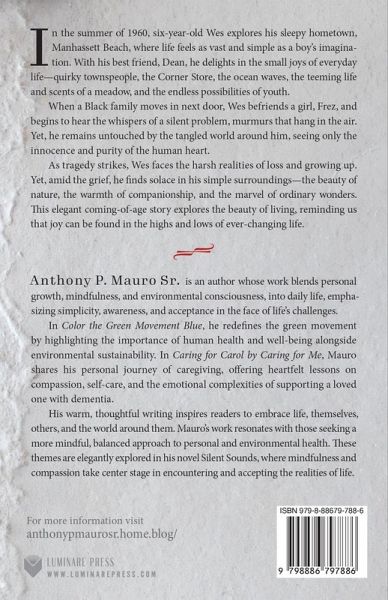Anthony P. Mauro Sr. is a writer, humorist, and entrepreneur who does his best work in the solitude of his small office near the picturesque horse farms of Colts Neck, New Jersey. Born and raised in the charming town of Monmouth Beach on the famed Jersey Shore, he brings a deep sense of place and purpose to all his creative work.In each of Mauro's works, a powerful theme emerges-a universal consciousness shared by all living things. Whether through the fight to protect nature, the act of selfless caregiving, or the wide-eyed wonder of childhood. Mauro's stories encourage readers to reconnect with this spiritual bond. He writes to stir something - your heart, thoughts, and even assumptions. It is this profound awareness that drives humanity to stewardship of each other, of nature, and of the future.He is widely acclaimed for his advocacy of environmental stewardship. His influential writings and book, Color the Green Movement Blue, have educated state legislators on the core principles of natural resource conservation, cementing his reputation as a respected voice in the field. In recognition of his impact, former New Jersey Governor Chris Christie appointed him to the Department of Environmental Protection gubernatorial transition team.Anthony's memoir, Caring for Carol by Caring for Me, emerged from his deeply personal journey through his wife's dementia diagnosis. Written as a timeline, the book offers insight, guidance, and emotional support for families, caregivers, and anyone touched by the disease. Through poignant storytelling, he shares a method for finding equanimity amidst sorrow, exploring wonder and imagination to uncover joy even in suffering.He is also the author of Silent Sounds, a moving coming-of-age novel that follows a six-year-old boy's journey through wonder and hardship. The story explores how moments of awe and imagination help shape resilience in the face of life's most difficult challenges. In Fighting Mark Twain, he pairs his original reflections with the sharp wit of a fictional Mark Twain persona, crafting a humorous and thought-provoking dialogue on life, meaning, and human folly.Beyond writing, Anthony is a singer and songwriter whose music charted in the top 10 of secondary radio markets. He earned his MBA from Monmouth College.