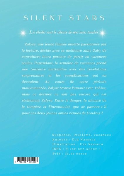 Zalyse, une jeune femme muette passionnée par la lecture, décide avec sa meilleure amie Gaby de convaincre leurs parents de partir en vacances seules. Cependant, la semaine de vacances prend une tournure inattendue avec des révélations surprenantes et les complications qui en découlent. Au cours de cette période mouvementée, Zalyse trouve l'amour avec Tobias, mais ce dernier ne sait pas encore qui est réellement Zalyse.Entre le danger, la menace de la tempête et "l'inconnue,"que se passera-t-il pour ces deux jeunes amies venues de Londres ?Venez découvrir, la Finlande, le Mont Salla, et le chalet des Cimes Boréales a travers les yeux de Zalyse.…mehr