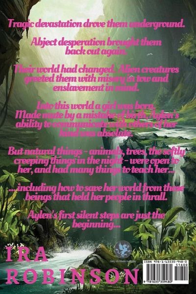 Tragic devastation drove them underground. Abject desperation brought them back out again. Their world had changed. Alien creatures greeted them with misery in tow and enslavement in mind. Into this world a girl was born. Made mute by a mistake of birth, Aylen's ability to communicate with others of her kind was absolute. But natural things - animals, trees, the softly creeping things in the night - were open to her, and had many things to teach her... ... including how to save her world from those beings that held her people in thrall. Aylen's first silent steps are just the beginning...