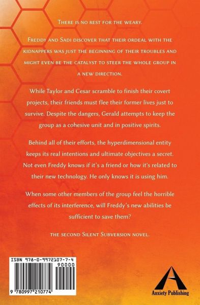 There is no rest for the weary. Freddy and Sadi soon discover that their ordeal with the kidnappers was just the beginning of their troubles and might even be the catalyst to steer the whole group in a new direction. While Taylor and Cesar scramble to finish their secret projects, their friends must flee their former lives just to survive. Despite the dangers, Gerald attempts to keep the group as a cohesive unit and in positive spirits. Behind all of their efforts, the mysterious entity keeps its real intentions and ultimate objectives a secret. Not even Freddy knows if it's a friend or how it's related to Taylor's invention. He only knows that it seems to want him. When some other members of the group feel the horrible effects of its interference, will Freddy's new talents be sufficient to deliver them? This is the second installment in the Silent Subversion series, a story about leaving home. The saga will come to a conclusion in the third and final book.