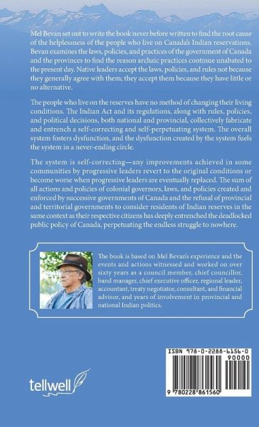 Mel Bevan set out to write the book never before written to find the root cause of the helplessness of the people who live on Canada's Indian reservations. Bevan examines the laws, policies, and practices of the government of Canada and the provinces to find the reason archaic practices continue unabated to the present day. Native leaders accept the laws, policies, and rules not because they generally agree with them; they accept them because they have little or no alternative. The people who live on the reserves have no method of changing their living conditions. The Indian Act and its regulations, along with rules, policies, and political decisions, both national and provincial, collectively fabricate and entrench a self-correcting and self-perpetuating system. The overall system fosters dysfunction, and the dysfunction created by the system fuels the system in a never-ending circle. The system is self-correcting-any improvements achieved in some communities by progressive leaders revert to the original conditions or become worse when progressive leaders are eventually replaced. The sum of all actions and policies of colonial governors, laws, and policies created and enforced by successive governments of Canada and the refusal of provincial and territorial governments to consider residents of Indian reserves in the same context as their respective citizens has deeply entrenched the deadlocked public policy of Canada, perpetuating the endless struggle to nowhere.