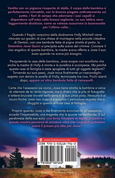 Vestita con un pigiama ricoperto di stelle, il corpo della bambina è perfettamente immobile, con le braccia piegate ordinatamente sul petto. I fiori di campo che adornano i suoi capelli si disperdono sull'erba nella brezza tagliente. Le sue labbra sono leggermente dischiuse, come se volesse sussurrare la buonanotte per l'ultima volta... Quando il fragile corpicino della dodicenne Holly Mitchell viene ritrovato sui gradini di una chiesa di montagna nella piccola cittadina di Denton, con una bambola fatta di pigne stretta al petto, la Detective Josie Quinn si precipita sulla scena del crimine. Conosce il viso angelico di questa bambina, la madre aveva offerto a Josie il suo aiuto quando ne aveva più bisogno. Perquisendo la casa della bambina, Josie scopre con sconforto che anche la madre di Holly è morta e la sorellina è scomparsa. Ma perché questa casa di famiglia è stata spogliata di tutti gli oggetti taglienti? Tornando sui suoi passi, Josie trova finalmente un nascondiglio segreto con dentro la sorella di Holly, terrorizzata ma viva. Pochi istanti dopo, appare un'altra bambola fatta di ramoscelli. Certa che l'assassino sia vicino, Josie tiene stretta la bambina e cerca di ottenere da lei delle risposte, ma è chiaro che la pila di fotografie e lettere bruciate trovate nella serra è la sua unica pista. Nessuno è al sicuro finché Josie non riuscirà a scoprire il pericoloso segreto che è sfuggito a questa remota casa di famiglia. Proprio quando Josie si sta finalmente avvicinando all'assassino, accade l'impensabile, una tragedia che la scuote nel profondo. È sul parabrezza della sua auto: una terza bambola di legno. Impedire a questo mostro perverso di uccidere altre vite innocenti potrebbe avere il prezzo più alto per Josie?