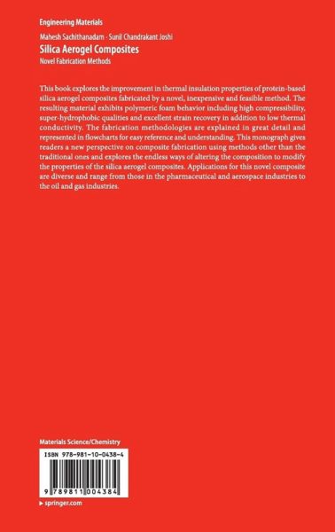 This book explores the improvement in thermal insulation properties of protein-based silica aerogel composites fabricated by a novel, inexpensive and feasiblemethod. The resulting material exhibits polymeric foam behavior including high compressibility, super-hydrophobic qualities and excellent strain recovery in addition to low thermal conductivity. The fabrication methodologies are explained in great detail and represented in flowcharts for easy reference and understanding. This monograph gives readers a new perspective on composite fabrication using methods other than the traditional ones and explores the endless ways of altering the composition to modify the properties of the silica aerogel composites. Applications for this novel composite are diverse and range from those in the pharmaceutical and aerospace industries to the oil and gas industries.