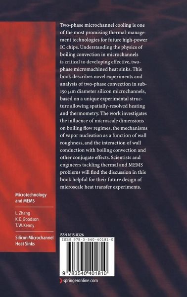 Two-phase microchannel cooling is one of the most promising thermal-management technologies for future high-power IC chips. Understanding the boiling process and the two-phase-flow behavior in microchannels is the key to successful implementation of a microchannel heat sink. This book focuses on the phase-change phenomena and the heat transfer in sub-150 nm diameter silicon microchannels, with emphasis on thermal measurement and modeling, and the impact of small dimensions on two-phase flow regimes.