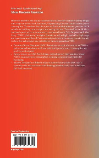 This book describes the n and p-channel Silicon Nanowire Transistor (SNT) designs with single and dual-work functions, emphasizing low static and dynamic power consumption. The authors describe a process flow for fabrication and generate SPICE models for building various digital and analog circuits. These include an SRAM, a baseband spread spectrum transmitter, a neuron cell and a Field Programmable Gate Array (FPGA) platform in the digital domain, as well as high bandwidth single-stage and operational amplifiers, RF communication circuits in the analog domain, in order to show this technology's true potential for the next generation VLSI.