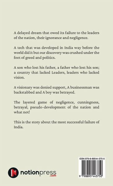 A delayed dream that owed its failure to the leaders of the nation, their ignorance and negligence. A tech that was developed in India way before the world did it but our discovery was crushed under the foot of greed and politics. A son who lost his father, a father who lost his son; a country that lacked Leaders, leaders who lacked vision. A visionary was denied support, A businessman was backstabbed and A boy was betrayed. The layered game of negligence, cunningness, betrayal, pseudo-development of the nation and what not! This is the story about the most successful failure of India.