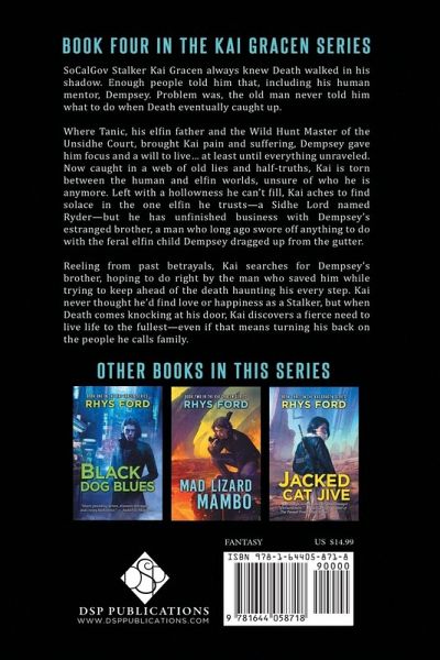 SoCalGov Stalker Kai Gracen always knew Death walked in his shadow. Enough people told him that, including his human mentor, Dempsey. Problem was, the old man never told him what to do when Death eventually caught up. Where Tanic, his elfin father and the Wild Hunt Master of the Unsidhe Court, brought Kai pain and suffering, Dempsey gave him focus and a will to live… at least until everything unraveled. Now caught in a web of old lies and half-truths, Kai is torn between the human and elfin worlds, unsure of who he is anymore. Left with a hollowness he can’t fill, Kai aches to find solace in the one elfin he trusts—a Sidhe Lord named Ryder—but he has unfinished business with Dempsey’s estranged brother, a man who long ago swore off anything to do with the feral elfin child Dempsey dragged up from the gutter. Reeling from past betrayals, Kai searches for Dempsey’s brother, hoping to do right by the man who saved him while trying to keep ahead of the death haunting his every step. Kai never thought he’d find love or happiness as a Stalker, but when Death comes knocking at his door, Kai discovers a fierce need to live life to the fullest—even if that means turning his back on the people he calls family.