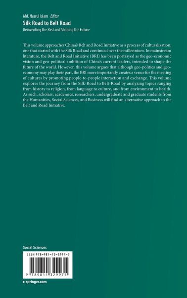 This volume approaches China's Belt and Road Initiative as a process of culturalization, one that started with the Silk Road and continued over the millennium. In mainstream literature, the Belt and Road Initiative (BRI) has been portrayed as the geo-economic vision and geo-political ambition of China's current leaders, intended to shape the future of the world. However, this volume argues that although geo-politics and geo-economy may play their part, the BRI more importantly creates a venue for the meeting of cultures by promoting people-to-people interaction and exchange. This volume explores the journey from the Silk-Road to Belt-Road by analyzing topics ranging from history to religion, from language to culture, and from environment to health. As such, scholars, academics, researchers, undergraduate and graduate students from the Humanities, Social Sciences, and Business will find an alternative approach to the Belt and Road Initiative.