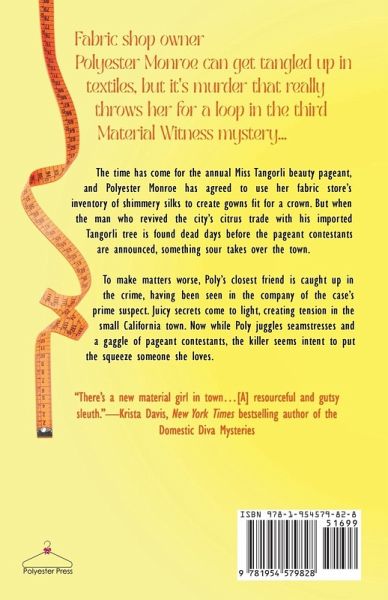 Fabric shop owner Polyester Monroe can get tangled up in textiles, but it's murder that really throws her for a loop in the third Material Witness mystery... The time has come for the annual Miss Tangorli beauty pageant, and Polyester Monroe has agreed to use her fabric store's inventory of shimmery silks to create gowns fit for a crown. But when the man who revived the city's citrus trade with his imported Tangorli tree is found dead days before the pageant contestants are announced, something sour takes over the town. ¿To make matters worse, Poly's closest friend is caught up in the crime, having been seen in the company of the case's prime suspect. Juicy secrets come to light, creating tension in the small California town. Now while Poly juggles seamstresses and a gaggle of pageant contestants, the killer seems intent to put the squeeze someone she loves.