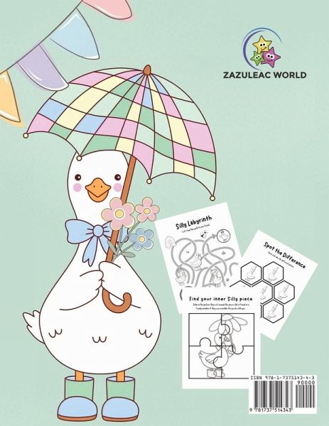 Fun and Educational Activity Book for Kids Preschool, PreK and Kindergarten Age Filled with many types of Silly Goose-themed activities, it will stimulate your child's mind, inspire creativity and fine motor skills. It's also great for improving a child's cognitive thought processes and boosting concentration. Hours of fun and entertainment to enjoy! Table of Contents:Alphabet Formation Tracing Words Balloons and Friends Silly Labyrinth Same or Different Spot the Difference Number Order Goose Counting What Comes Next Before and After Painting by Numbers Find your inner Silly piece Silly Goose House Bookmarks Birthday Party Hat -Suitable for both boys and girls - Durable, perfect binding - Perfect for gel pen, ink, or pencils - Product Measures: 21.59 x 27.94 cm (8.5" x 11") - Large Size - Makes a great travel book, birthday, or vacation activities. Connect with us @ZazuleacWorld