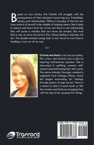 Based on a true story, five friends will struggle with the consequences of their decisions concerning sex, friendships, money, and relationships. Tiffany is the glue of the four but loses control of herself in the middle of helping others. She is able to mature and learn from her errors, but there is one relationship that will cause a mistake that can never be erased. She must find a way to move forward in life without letting it mentally kill her. The double-minded young lady is now force to trust God in leading a way out of no way.