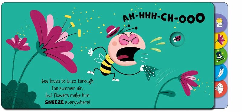 Meet the hilarious animals and discover five funny noises in Silly Sounds. This interactive book features sleek sliders that make different sounds when pulled out from the pages! From Hippo's huge belly laugh, to Bee's adorable sneeze and many more, children can meet the silly animals in lots of funny situations. What's more, children can pull the tabs and watch as additional details appear in the holes in the scenes. Perfect to read aloud at story time, this book if filled with vibrant illustrations of animals that little ones will love.