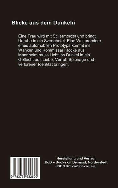 Eine Frau wird mit Stil ermordet und bringt Unruhe in ein Szenehotel. Eine Weltpremiere eines automobilen Prototyps kommt ins Wanken und Kommissar Klocke aus Mannheim muss Licht ins Dunkel in ein Geflecht aus Liebe, Verrat, Spionage und verlorener Identität bringen.In kurzen Sequenzen werden verschiedene Handlungsstränge und Zeitsprünge plastisch und detailliert beschrieben, um hier ein Kopfkino ablaufen zu lassen.