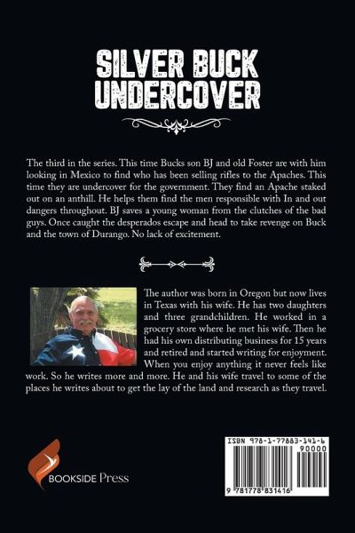 The author is from Texas but was born in Oregon. He has a wife, two daughters, and three grandchildren. He loves nature and traveling. He's been working for fifty years = first in a grocery store and then his own distributing business - to raise his family. He has always wanted to write but was too busy. Now that he has retired, he has plenty of time to do what he loves. He will be traveling and writing more Silver Buck adventures and also other Western titles. He loves to write fiction stories about places he has been.