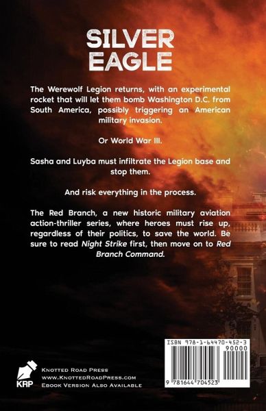 Unlikely heroes arise from behind the Iron Curtain. The Werewolf Legion returns, with an experimental rocket that will let them bomb Washington D.C. from South America, possibly triggering an American military invasion. Or World War III. Sasha and Luyba must infiltrate the Legion base and stop them. And risk everything in the process. The Red Branch, a new historic military-aviation action-thriller series, where heroes must rise up, regardless of their politics, to save the world. Be sure to read Night Strike first, then move on to Red Branch Command.