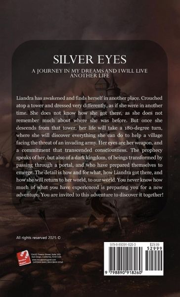 Liandra has awakened and finds herself in another place. Crouched atop a tower and dressed very differently, as if she were in another time. She does not know how she got there, as she does not remember much about where she was before. But once she descends from that tower, her life will take a 180-degree turn, where she will discover everything she can do to help a village facing the threat of an invading army. Her eyes are her weapon, and a commitment that transcended consciousness. The prophecy speaks of her, but also of a dark kingdom, of beings transformed by passing through a portal, and who have prepared themselves to emerge. The detail is how and for what, how Liandra got there, and how she will return to her world, to our world. You never know how much of what you have experienced is preparing you for a new adventure. You are invited to this adventure to discover it together!