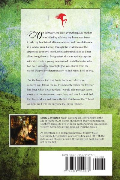 On February 3rd, Ava lost everything. Her mother was killed by soldiers, her home was burnt to ash, and her best friend Miles was taken. She was left alone in a land of ruin. She set off through the wilderness of the oppressed country she loved, resolved to find Miles as she met allies along the way. Her greatest ally was a pirate captain with silver hair, a young man named Louis Rochester who had been kissed by moonlight that was absent from the world. Despite her determination to find Miles, Ava fell in love. But the hardest feat that Louis Rochester's love ever endured was letting Ava go. She would only realize her love for him later, when it was too late. She would ride through seven months of imprisonment, death, loss, and war. She would find that Miles and Louis were the last Children of the Tribe of Admon, but she was the only one that silver follows.