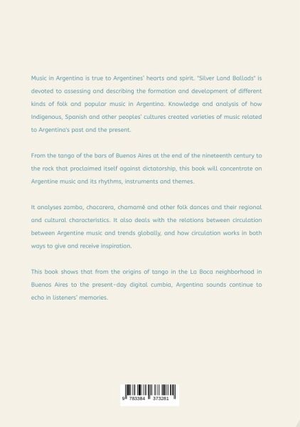 Music in Argentina is true to Argentines' hearts and spirit. "Silver Land Ballads" is devoted to assessing and describing the formation and development of different kinds of folk and popular music in Argentina. Knowledge and analysis of how Indigenous, Spanish and other peoples' cultures created varieties of music related to Argentina's past and the present. From the tango of the bars of Buenos Aires at the end of the nineteenth century to the rock that proclaimed itself against dictatorship, this book will concentrate on Argentine music and its rhythms, instruments and themes. It analyses zamba, chacarera, chamamé and other folk dances and their regional and cultural characteristics. It also deals with the relations between circulation between Argentine music and trends globally, and how circulation works in both ways to give and receive inspiration. This book shows that from the origins of tango in the La Boca neighborhood in Buenos Aires to the present-day digital cumbia, Argentina sounds continue to echo in listeners' memories.