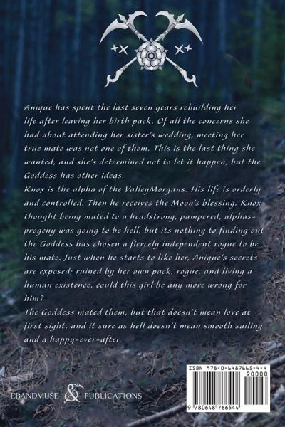 Meeting your soul mate doesn't mean love at first sight. Anique has spent the last seven years rebuilding her life after leaving her birth pack. Of all the concerns she had about attending her sister’s wedding, meeting her true mate was not one of them. This is the last thing she wanted, and she’s determined not to let it happen, but the Goddess has other ideas. Knox is the alpha of the ValleyMorgans. His life is orderly and controlled. Then he receives the Moon’s blessing. Knox thought being mated to a headstrong, pampered, alphas-progeny was going to be hell, but its nothing to finding out the Goddess has chosen a fiercely independent rogue to be his mate. Just when he starts to like her, Anique’s secrets are exposed; ruined by her own pack, rogue, and living a human existence, could this girl be any more wrong for him? The Goddess mated them, but that doesn’t mean love at first sight, and it sure as hell doesn’t mean smooth sailing and a happy-ever-after.