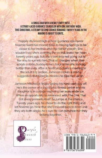 "Delightful, well-written second chance romance" Happily divorced high school guidance counselor Noemie Saint has moved back to Kissing Springs to be closer to her mother after her father's death. She wouldn't say she's avoiding the ex that broke her heart twenty years ago, but she's certainly not going out of her way to run into him. That all changes when their worlds collide. Suddenly he's back in her life, looking better than ever. After a mortifying chance meeting in the adult toy section, Jameson makes a snarky suggestion that Noemie decides to take him up on. Jameson Mitchell is finally seeing his hard work pay off. He's the owner of a successful fitness center and his daughter is in college exploring her independence. When an opportunity to reconnect with The One That Got Away presents itself, he jumps at the chance. Twenty years ago, he chose to do the right thing and let Noemie go. Now that she's moved back to town and they are both single, he's sure he can convince her they belong together. She wants one night, he wants forever. Can this second chance couple make some Christmas magic?