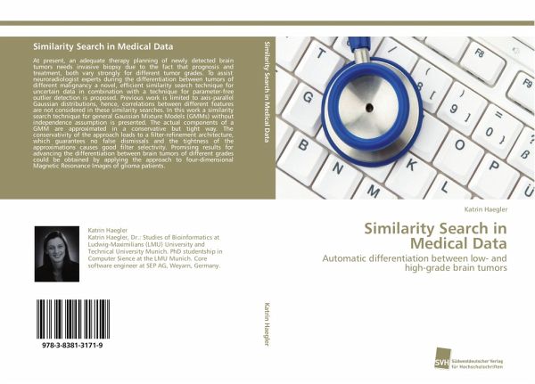 At present, an adequate therapy planning of newly detected brain tumors needs invasive biopsy due to the fact that prognosis and treatment, both vary strongly for different tumor grades. To assist neuroradiologist experts during the differentiation between tumors of different malignancy a novel, efficient similarity search technique for uncertain data in combination with a technique for parameter-free outlier detection is proposed. Previous work is limited to axis-parallel Gaussian distributions, hence, correlations between different features are not considered in these similarity searches. In this work a similarity search technique for general Gaussian Mixture Models (GMMs) without independence assumption is presented. The actual components of a GMM are approximated in a conservative but tight way. The conservativity of the approach leads to a filter-refinement architecture, which guarantees no false dismissals and the tightness of the approximations causes good filter selectivity. Promising results for advancing the differentiation between brain tumors of different grades could be obtained by applying the approach to four-dimensional Magnetic Resonance Images of glioma patients.