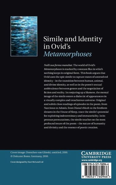 Nulli sua forma manebat. The world of Ovid's Metamorphoses is marked by constant flux in which nothing keeps its original form. This book argues that Ovid uses the epic simile to capture states of unresolved identity - in the transition between human, animal and divine identity, as well as in the poem's textual ambivalence between genres and the negotiation of fiction and reality. In conjuring up a likeness, the mental image of the simile enters a dialectic of appearances in a visually complex and treacherous universe. Original and subtle close readings of episodes in the poem, from Narcissus to Adonis, from Diana's blush to the freeform dreams in the House of Sleep, trace the simile's potential for exploiting indeterminacy and immateriality. In its protean permutations the simile touches on the most profound issues of the poem - the nature of humanity and divinity and the essence of poetic creation.