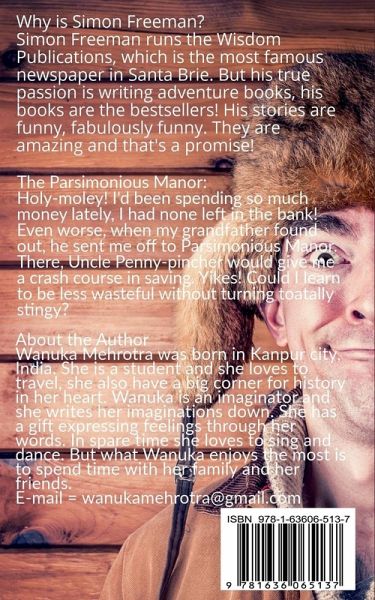 Who is Simon Freeman? Simon Freeman runs the Wisdom Publications, which is the most famous newspaper in Santa Brie. But his true passion is writing adventure books, his books are the bestsellers! His stories are funny, fabulously funny. They are amazing and that's a promise! The Parsimonious Manor: Holy-moley! I'd been spending so much money lately, I had none left in the bank! Even worse, when my grandfather found out, he sent me off to Parsimonious Manor. There, Uncle Penny-pincher would give me a crash course in saving. Yikes! Could I learn to be less wasteful without turning toatally stingy?