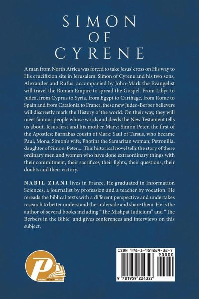 A man from North Africa was forced to take Jesus' cross on His way to His crucifixion site in Jerusalem. Simon of Cyrene and his two sons, Alexander and Rufus, accompanied by John-Mark the Evangelist will travel the Roman Empire to spread the Gospel. From Libya to Judea, from Cyprus to Syria, from Egypt to Carthage, from Rome to Spain and from Catalonia to France, these new Judeo-Berber believers will discreetly mark the History of the world. On their way, they will meet famous people whose words and deeds the New Testament tells us about. Jesus first and his mother Mary; Simon Peter, the first of the Apostles; Barnabas cousin of Mark; Saul of Tarsus, who became Paul; Mona, Simon's wife; Photina the Samaritan woman; Petronilla, daughter of Simon-Peter, ... This historical novel tells the story of these ordinary men and women who have done extraordinary things with their commitment, their sacrifices, their fights, their questions, their doubts and their victory.